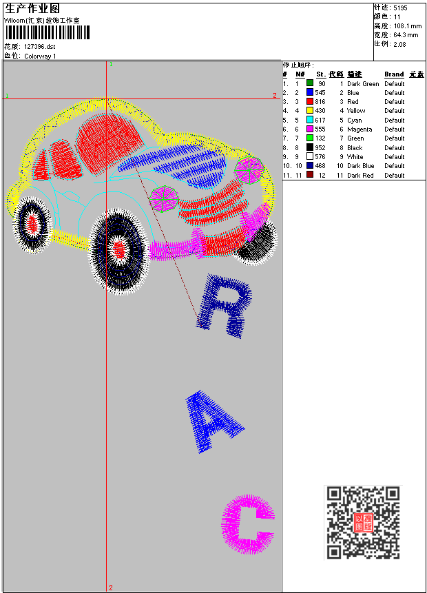 汽车_字母_卡通图案 点此上传花版兑乐绣币/现金 dst花版参数: 大小:15.72 KB / 尺寸:64*108[毫米] / 针数:5195针 / 线色:11 / 格式:dst / 版本:6 版带文件需绣花软件方可打开,可配色打印导出各种格式或直接上机绣。如无绣花软件可下载1:1模拟效果图。 PNG图片信息:大小:0.1(MB) /图宽*高:244x409(像素) 上传作者( 明兴*** ) 获得乐绣币:5个 dst下载 1:1图下载 关闭 相似花型推荐: 女人 猛虎下山图_老虎图案_猛虎刺绣图案 忠诚千秋_关公_关羽_刺绣图案 荷池雨鲤_荷花_鲤鱼_精品图案 领花_衣领花_领形花_V字形领花 蛇_四脚蛇_蜥蜴_变色龙_图案_EMB原版 书的图案_刺绣图案_EMB格式下载 友情_文字图案_汉字图案 中国像棋的图案_刺绣图案 礼品盒 图案_EMB源版文件 水果 图案_童装贴布图案 六鹤同春图_工艺刺绣版带_工艺版 神鸟_火凤凰图案_EMB文件 树的图案_三条树刺绣图案_EMB源版 乡村夜晚_工艺版_EMB格式 上一个花样:美女_乱针绣_人物像图案 下一个花样:女人