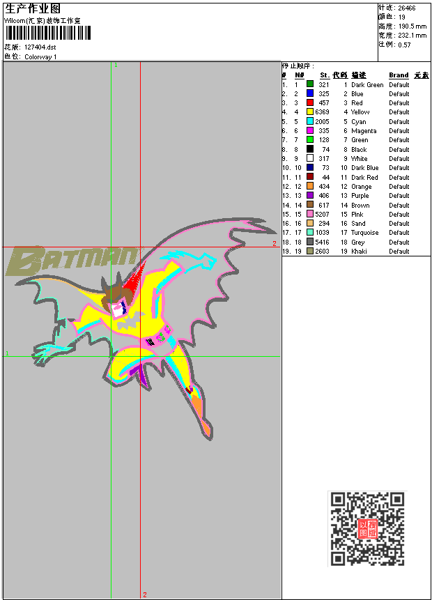 蝙蝠侠贴布绣_童装卡通图案 点此上传花版兑乐绣币/现金 dst花版参数: 大小:78.04 KB / 尺寸:232*191[毫米] / 针数:26466针 / 线色:19 / 格式:dst / 版本:6 版带文件需绣花软件方可打开,可配色打印导出各种格式或直接上机绣。如无绣花软件可下载1:1模拟效果图。 PNG图片信息:大小:0.4(MB) /图宽*高:878x721(像素) 上传作者( 大睡*** ) 获得乐绣币:1个 dst下载 1:1图下载 关闭 相似花型推荐: 老虎图案_刺绣图案 龙_中国龙图案_吉祥龙刺绣图案 花车图案_刺绣图案 蒙纳丽莎图案_刺绣图案 门神图案_门神刺绣图案 美女_乱针绣_人物像图案 汽车_字母_卡通图案 女人 猛虎下山图_老虎图案_猛虎刺绣图案 忠诚千秋_关公_关羽_刺绣图案 荷池雨鲤_荷花_鲤鱼_精品图案 领花_衣领花_领形花_V字形领花 蛇_四脚蛇_蜥蜴_变色龙_图案_EMB原版 书的图案_刺绣图案_EMB格式下载 友情_文字图案_汉字图案 上一个花样:pool_图案_骑马_刺绣图案 下一个花样:老虎图案_刺绣图案