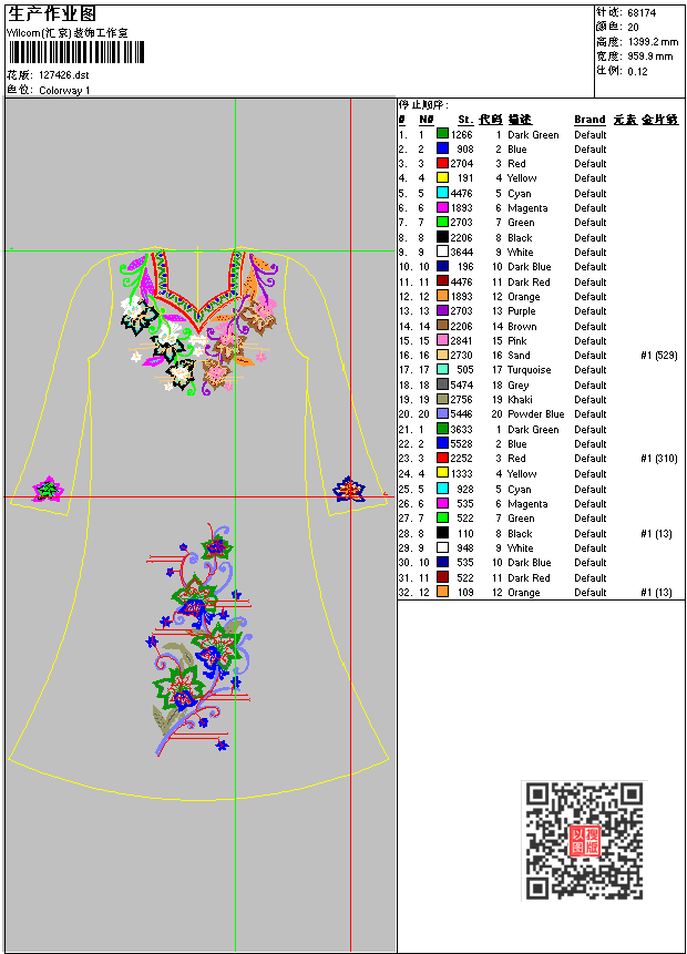 中东旗袍大花_民族服装刺绣图案 点此上传花版兑乐绣币/现金 dst花版参数: 大小:200.23 KB / 尺寸:960*1399[毫米] / 针数:68174针 / 线色:20 / 格式:dst / 版本:6 版带文件需绣花软件方可打开,可配色打印导出各种格式或直接上机绣。如无绣花软件可下载1:1模拟效果图。 PNG图片信息:大小:3.2(MB) /图宽*高:3631x5293(像素) 上传作者( 将魂*** ) 获得乐绣币:5个 dst下载 1:1图下载 关闭 相似花型推荐: 生意兴隆_挂画刺绣图案_汉字图案 帽子前片立体绣版带_机绣的帽子图案 NY帽子前片贴布版带_帽子图案 品牌帽子后片版带_帽子图案 卡通猫图案_贴布猫_刺绣图案 猫的图案_可爱的小猫刺绣图案 帽子前片图案_帽子的刺绣图案 pool_图案_骑马_刺绣图案 蝙蝠侠贴布绣_童装卡通图案 老虎图案_刺绣图案 龙_中国龙图案_吉祥龙刺绣图案 花车图案_刺绣图案 蒙纳丽莎图案_刺绣图案 门神图案_门神刺绣图案 美女_乱针绣_人物像图案 上一个花样:中东长袍胸花_民族风格刺绣图案 下一个花样:生意兴隆_挂画刺绣图案_汉字图案