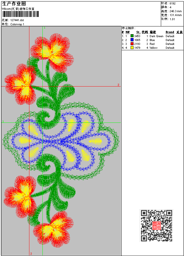 - dst花版参数: 大小:24.50 KB / 尺寸:131*240[毫米] / 针数:8192针 / 线色:4 / 格式:dst / 版本:6
