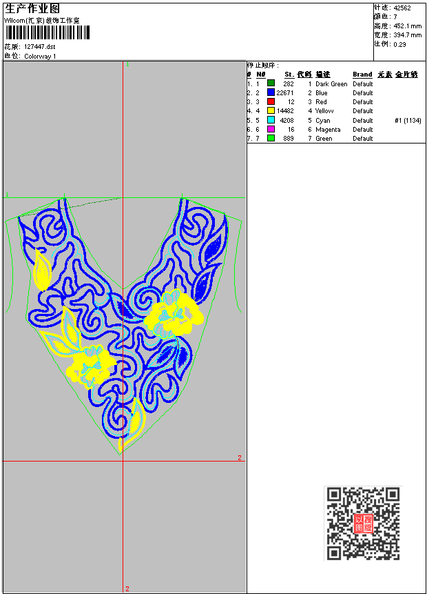 - dst花版参数: 大小:125.19 KB / 尺寸:395*452[毫米] / 针数:42562针 / 线色:7 / 格式:dst / 版本:6