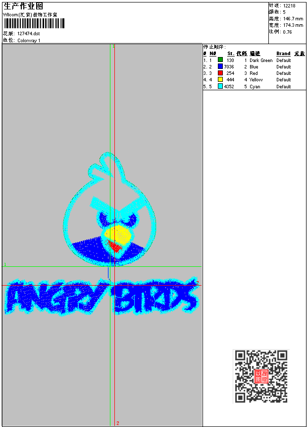- dst花版参数: 大小:36.30 KB / 尺寸:174*147[毫米] / 针数:12218针 / 线色:5 / 格式:dst / 版本:6