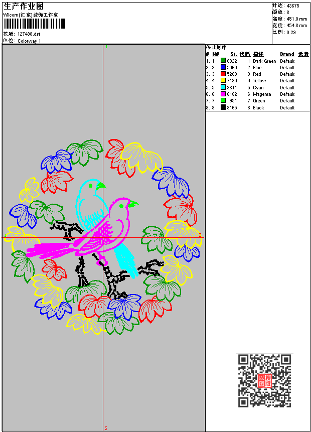 团花双鸟_家纺图案 点此上传花版兑乐绣币/现金 dst花版参数: 大小:128.46 KB / 尺寸:455*451[毫米] / 针数:43675针 / 线色:8 / 格式:dst / 版本:6 版带文件需绣花软件方可打开,可配色打印导出各种格式或直接上机绣。如无绣花软件可下载1:1模拟效果图。 PNG图片信息:大小:1.3(MB) /图宽*高:1721x1706(像素) 上传作者( yiny*** ) 获得乐绣币:20个 dst下载 1:1图下载 关闭 相似花型推荐: 寿字图案_寿字刺绣图案 莫生气图案_电脑机刺绣图案 枝头小鸟图案_电脑刺绣图案 虎图案_虎图片_虎的电脑刺绣图案 陈年老友图案_电脑刺绣工艺版 中国传统吉祥图案_电脑刺绣图案 房屋刺绣图案_房屋图案_工艺刺绣版 凤图案_凤图片_凤电脑刺绣图案 狼图案_狼图片_狼电脑刺绣图案 老虎_虎啸图案_虎啸图片_图案 龙-凤-福-中国风传统吉祥电脑刺绣图案 珍惜_文字版_刺绣工艺版 友情图案_汉字电脑刺绣图案 一帆风顺_电脑刺绣图案_图案 福字图案_吉祥寓意图案_福字图案 上一个花样:领花_衣领图案_衣领图片 下一个花样:寿字图案_寿字刺绣图案