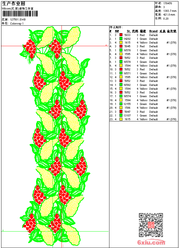 绿红相间_匹绣图案_匹绣刺绣图案 点此上传花版兑乐绣币/现金 emb花版参数: 大小:947.50 KB / 尺寸:421*1304[毫米] / 针数:170470针 / 线色:3 / 格式:emb / 版本:9 版带文件需绣花软件方可打开,可配色打印导出各种格式或直接上机绣。如无绣花软件可下载1:1模拟效果图。 PNG图片信息:大小:7.0 (MB) /图宽*高:1593x4932(像素) 上传作者( heja*** ) 获得乐绣币:30个 emb下载 1:1图下载 关闭 相似花型推荐: 韩花图片_韩花图案_机绣图案 领花_衣领图案_衣领图片 团花双鸟_家纺图案 寿字图案_寿字刺绣图案 莫生气图案_电脑机刺绣图案 枝头小鸟图案_电脑刺绣图案 虎图案_虎图片_虎的电脑刺绣图案 陈年老友图案_电脑刺绣工艺版 中国传统吉祥图案_电脑刺绣图案 房屋刺绣图案_房屋图案_工艺刺绣版 凤图案_凤图片_凤电脑刺绣图案 狼图案_狼图片_狼电脑刺绣图案 老虎_虎啸图案_虎啸图片_图案 龙-凤-福-中国风传统吉祥电脑刺绣图案 珍惜_文字版_刺绣工艺版 上一个花样:蝴蝶群飞_电脑匹绣刺绣图案_匹绣图案 下一个花样:韩花图片_韩花图案_机绣图案
