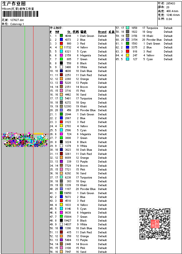 - dst花版参数: 大小:836.73 KB / 尺寸:1240*400[毫米] / 针数:285433针 / 线色:20 / 格式:dst / 版本:6