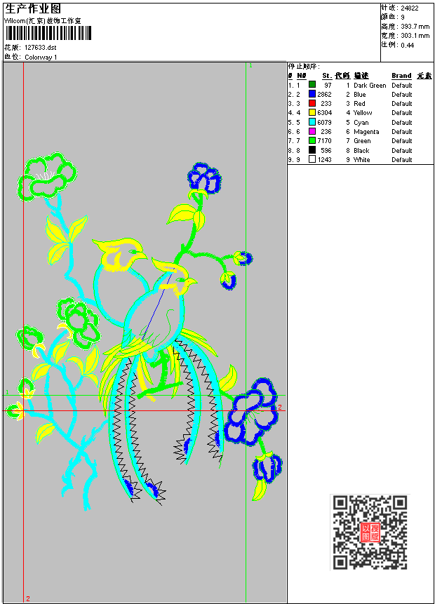 - dst花版参数: 大小:73.22 KB / 尺寸:303*394[毫米] / 针数:24822针 / 线色:9 / 格式:dst / 版本:6