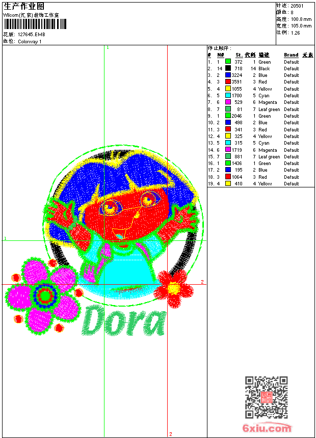 朵拉卡通图案_朵拉刺绣图案_童装图案 点此上传花版兑乐绣币/现金 emb花版参数: 大小:103.00 KB / 尺寸:105*101[毫米] / 针数:20501针 / 线色:8 / 格式:emb / 版本:7 版带文件需绣花软件方可打开,可配色打印导出各种格式或直接上机绣。如无绣花软件可下载1:1模拟效果图。 PNG图片信息:大小:0.2 (MB) /图宽*高:398x382(像素) 上传作者( czw1*** ) 获得乐绣币:5个 emb下载 1:1图下载 关闭 相似花型推荐: 章仔刺绣,章仔图案,EMB格式下载 可爱卡通图案_凯蒂猫(Hello Kitty)_贴布图案 唐装,龙,吉祥龙,图案,刺绣图案 生意兴隆_工艺版,图案,版带,挂画,EMB格式 民族图案,少数民族刺绣图案,吉祥古典图案 凤,凤凰,吉祥凤凰,图案,版带 小花_童装小花刺绣图案_童装花图案 少女的图案,卡通女孩刺绣图案,女孩图案 卡通熊,卡通小熊图案,卡通熊的图案 鸟,一对鸟图案,吉祥刺绣图案 领花,领花图案,刺绣图案,图案,衣领的图案 毛泽东-清平乐-六盘山,图案,刺绣图案,书法刺 蜘蛛侠图案,图案,刺绣图案,童装卡通版带 内衣版带_内衣刺绣图案_水溶图案 家和万事兴十字绣_电脑十字绣_十字绣图案 上一个花样:可爱卡通图案_童装刺绣图案_贴布图案_EMB格式 下一个花样:章仔刺绣,章仔图案,EMB格式下载