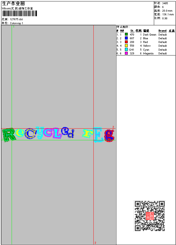 - dst花版参数: 大小:10.74 KB / 尺寸:136*20[毫米] / 针数:3495针 / 线色:6 / 格式:dst / 版本:6