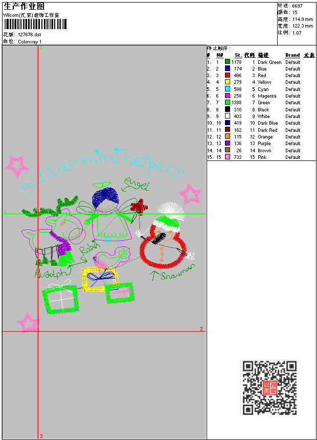 - 版带文件需绣花软件方可打开,可配色打印导出各种格式或直接上机绣。如无绣花软件可下载1:1模拟效果图。