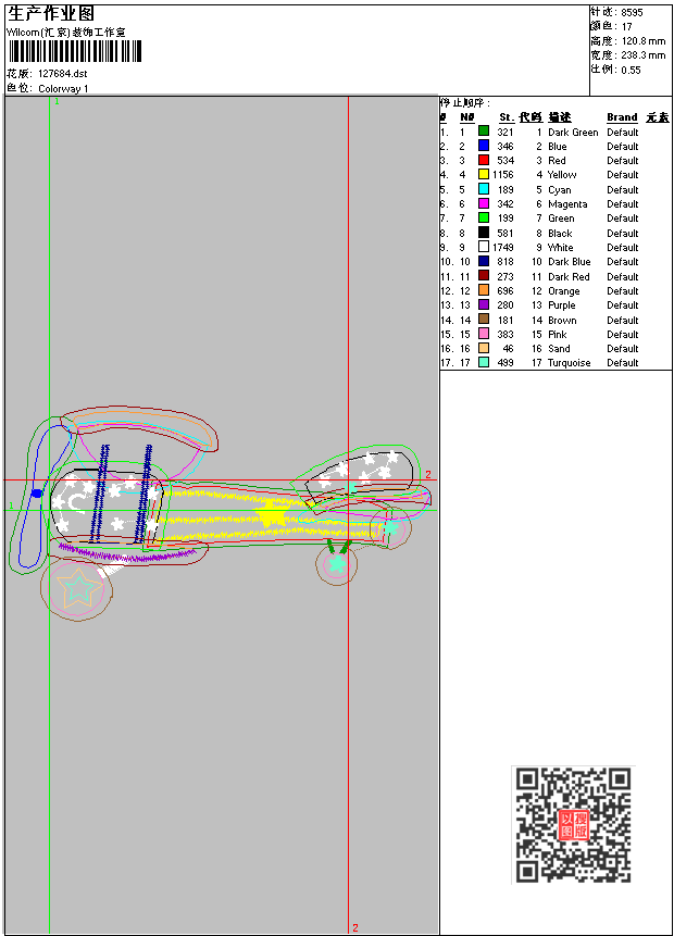 - 版带文件需绣花软件方可打开,可配色打印导出各种格式或直接上机绣。如无绣花软件可下载1:1模拟效果图。