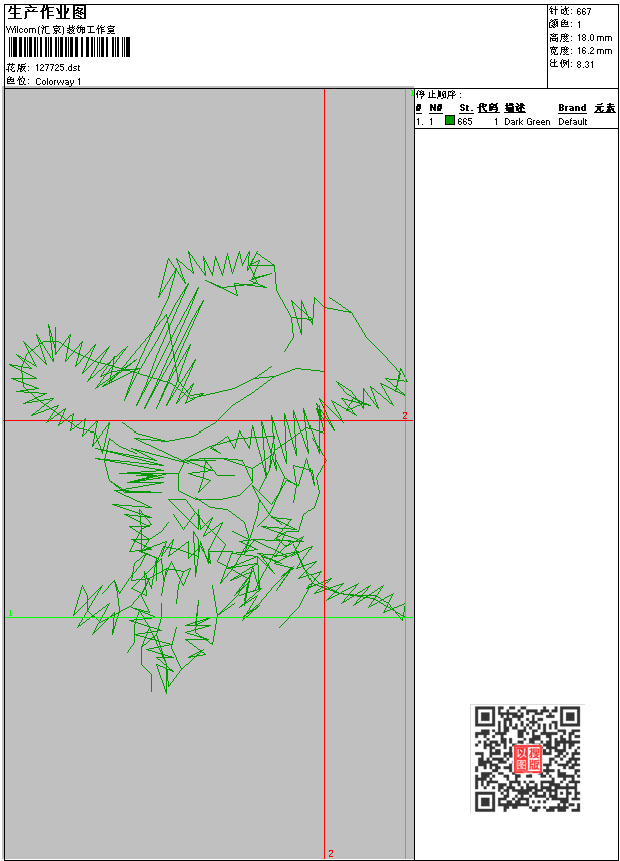 - dst花版参数: 大小:2.46 KB / 尺寸:16*18[毫米] / 针数:667针 / 线色:1 / 格式:dst / 版本:6