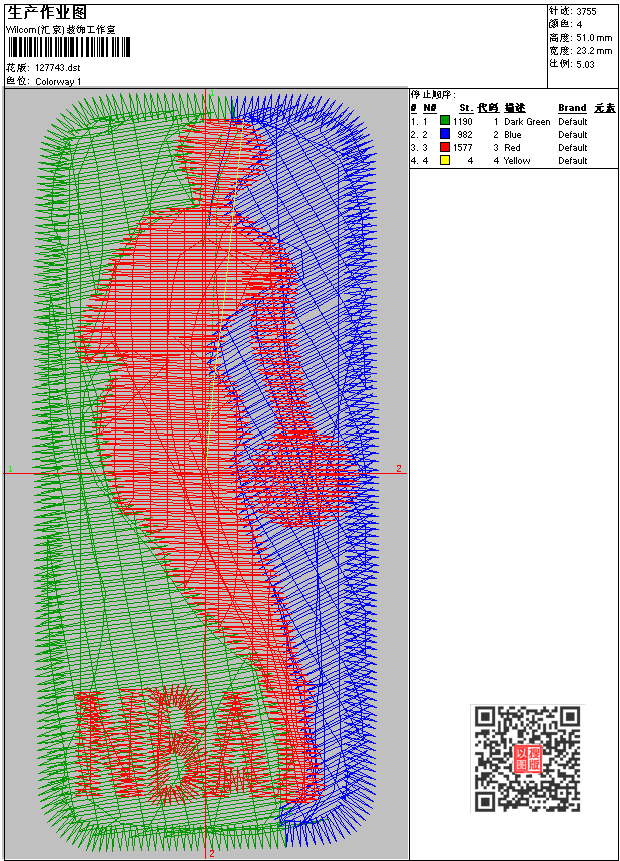 - dst花版参数: 大小:11.50 KB / 尺寸:23*51[毫米] / 针数:3755针 / 线色:4 / 格式:dst / 版本:6