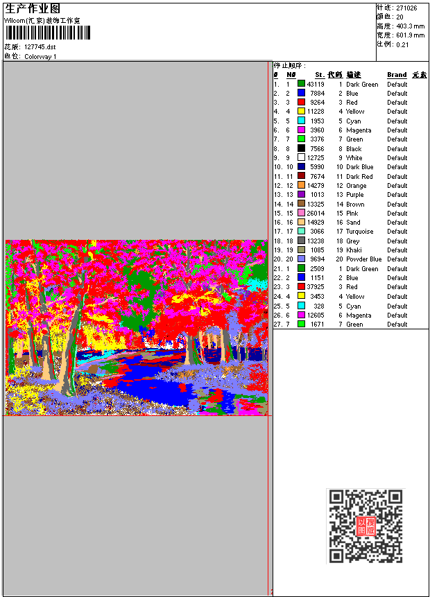 - dst花版参数: 大小:794.52 KB / 尺寸:602*403[毫米] / 针数:271026针 / 线色:20 / 格式:dst / 版本:6
