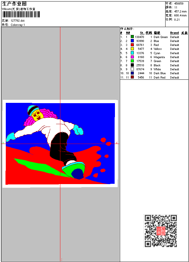 - dst花版参数: 大小:1.31 MB / 尺寸:600*457[毫米] / 针数:458859针 / 线色:11 / 格式:dst / 版本:6