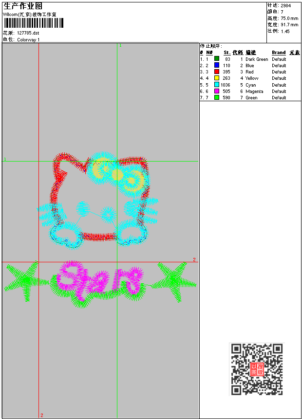 - 版带文件需绣花软件方可打开,可配色打印导出各种格式或直接上机绣。如无绣花软件可下载1:1模拟效果图。