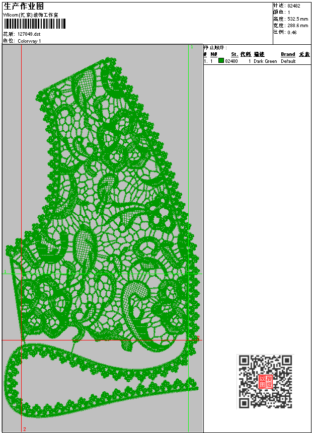- dst花版参数: 大小:242.15 KB / 尺寸:289*533[毫米] / 针数:82482针 / 线色:1 / 格式:dst / 版本:6