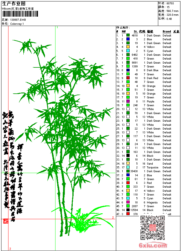 - emb花版参数: 大小:319.50 KB / 尺寸:320*567[毫米] / 针数:80793针 / 线色:15 / 格式:emb / 版本:8