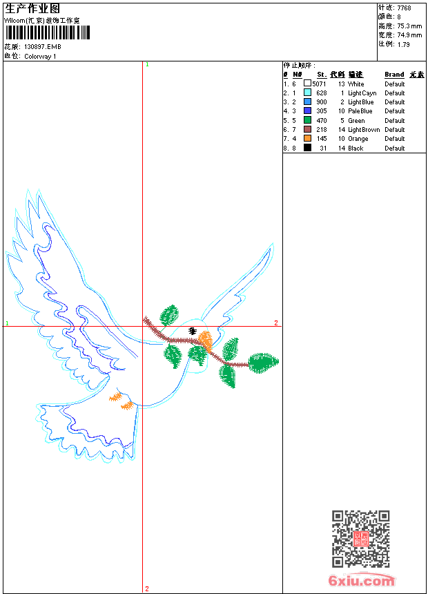 - 版带文件需绣花软件方可打开,可配色打印导出各种格式或直接上机绣。如无绣花软件可下载1:1模拟效果图。