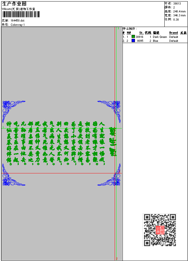 - dst花版参数: 大小:114.80 KB / 尺寸:346*248[毫米] / 针数:39013针 / 线色:2 / 格式:dst / 版本:6
