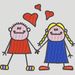 手拉手的小孩_男孩_女孩卡通图案_EMB原版