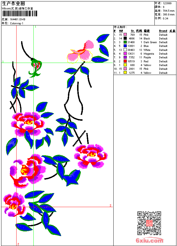 - emb花版参数: 大小:461.00 KB / 尺寸:381*704[毫米] / 针数:123999针 / 线色:9 / 格式:emb / 版本:9