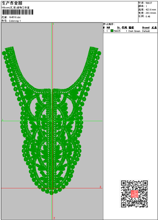 - dst花版参数: 大小:166.43 KB / 尺寸:283*424[毫米] / 针数:56637针 / 线色:1 / 格式:dst / 版本:6