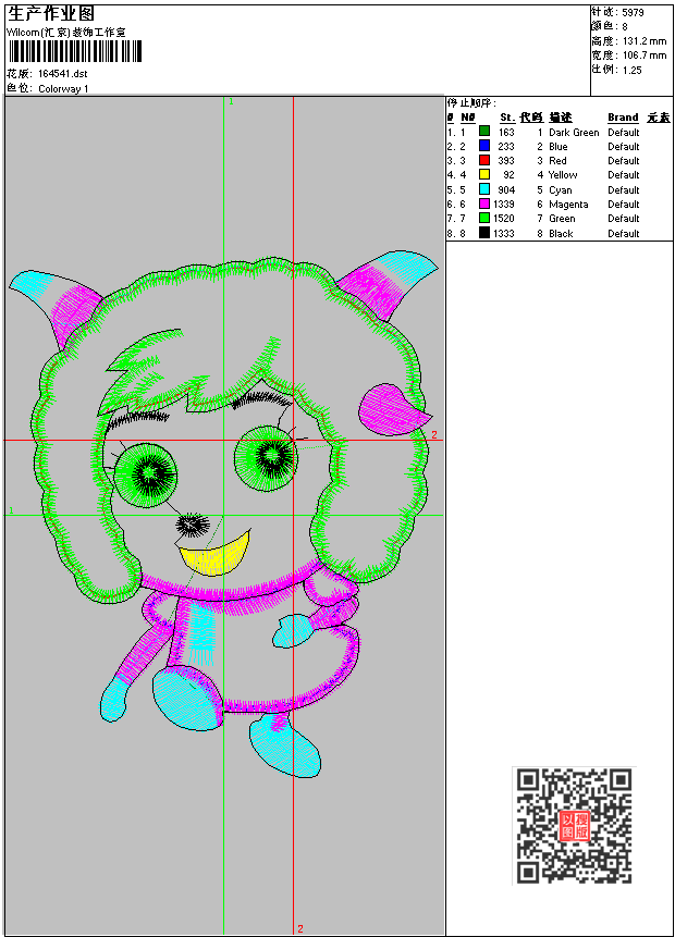 - 版带文件需绣花软件方可打开,可配色打印导出各种格式或直接上机绣。如无绣花软件可下载1:1模拟效果图。