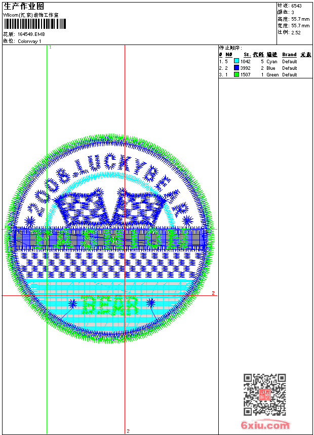 - emb花版参数: 大小:52.50 KB / 尺寸:56*56[毫米] / 针数:6543针 / 线色:3 / 格式:emb / 版本:7