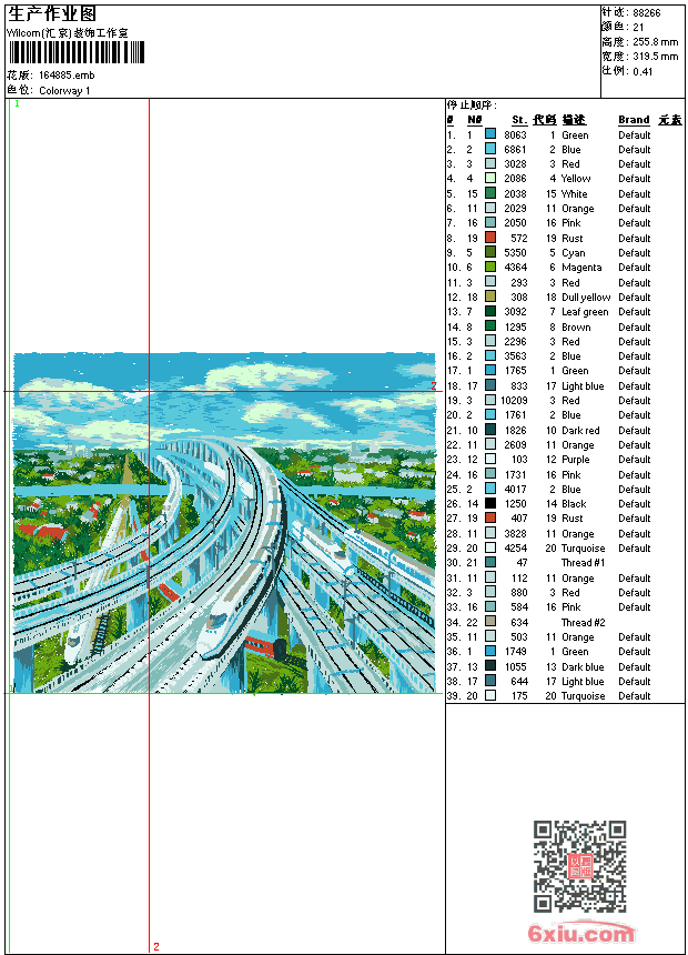 - emb花版参数: 大小:636.50 KB / 尺寸:320*256[毫米] / 针数:88266针 / 线色:21 / 格式:emb / 版本:9
