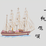 一帆风顺图案-吉祥类刺绣挂画