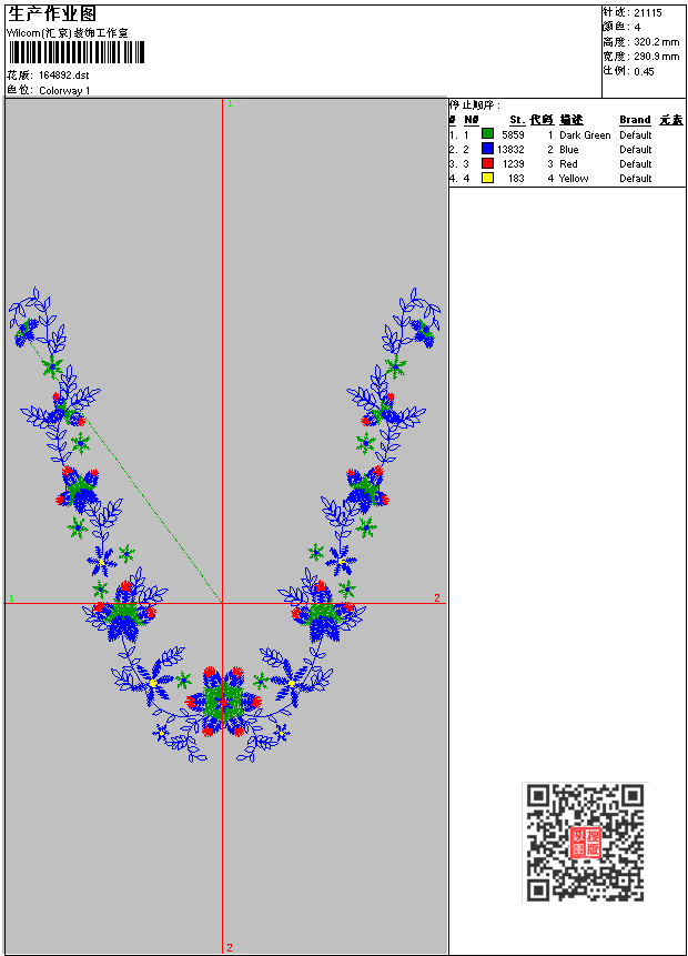- dst花版参数: 大小:62.36 KB / 尺寸:291*320[毫米] / 针数:21115针 / 线色:4 / 格式:dst / 版本:6