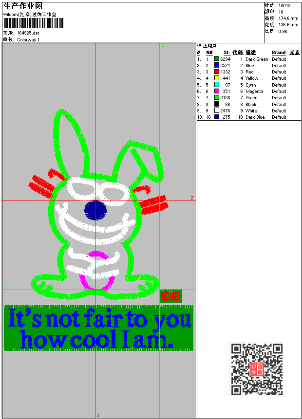 - 版带文件需绣花软件方可打开,可配色打印导出各种格式或直接上机绣。如无绣花软件可下载1:1模拟效果图。