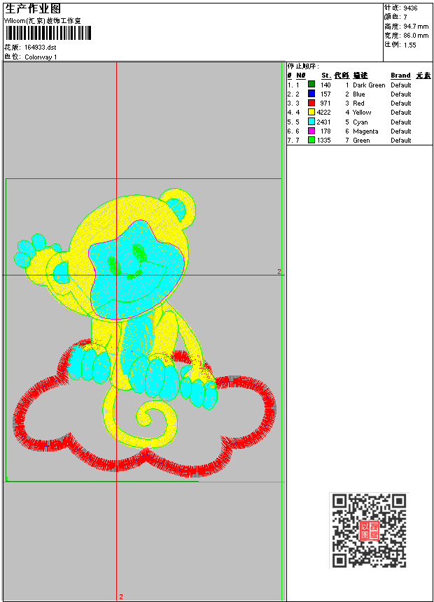 - 版带文件需绣花软件方可打开,可配色打印导出各种格式或直接上机绣。如无绣花软件可下载1:1模拟效果图。