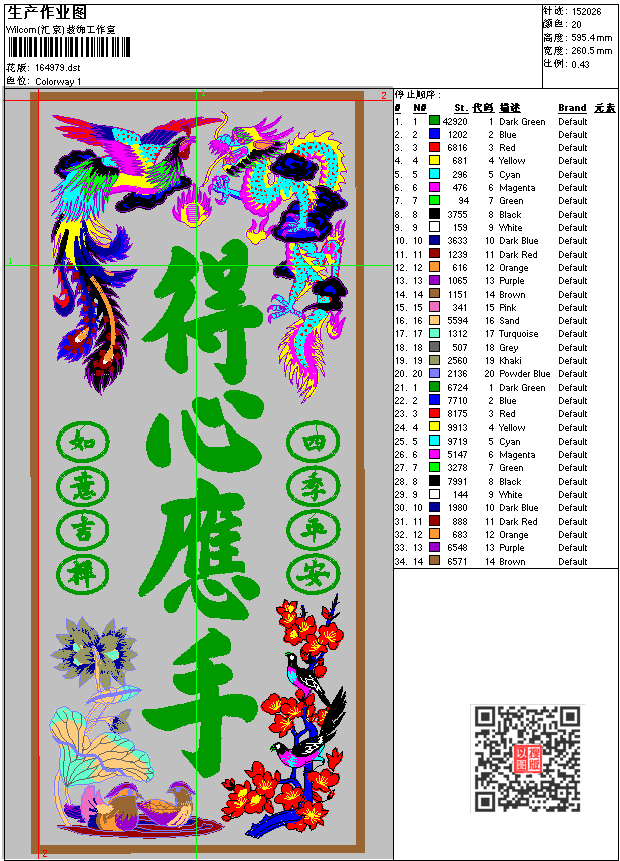 得心应手刺绣挂画,工艺装饰品 点此上传花版兑乐绣币/现金 dst花版参数: 大小:445.89 KB / 尺寸:261*595[毫米] / 针数:152026针 / 线色:20 / 格式:dst / 版本:6 版带文件需绣花软件方可打开,可配色打印导出各种格式或直接上机绣。如无绣花软件可下载1:1模拟效果图。 PNG图片信息:大小:2.5(MB) /图宽*高:986x2253(像素) 上传作者( 小邓*** ) 获得乐绣币:10个 dst下载 1:1图下载 关闭 相似花型推荐: 麒麟_金麒麟_古典吉祥电脑图 字母刺绣 字母 字母章仔_EMB版带 年年有鱼_年年有余_红鲤鱼_工艺刺绣挂画_EM Honda 本田汽车贴标 HONDA_日本本田honda汽车车标 贴布绣_花边_电脑贴布绣 被套_被套_被套刺绣 流星标志_LOGO_EMB版带 椭圆形章标 _EMB格式 服装花_立体绣英文_立体绣刺绣 小女孩头像标,章_EMB版带 章,标,商标_EMB版带 服装花_男装T恤 1989电脑标章版带 电脑标、刺绣标_EMB版带 上一个花样:福字刺绣图案_电脑_花版下载 下一个花样:麒麟_金麒麟_古典吉祥电脑图