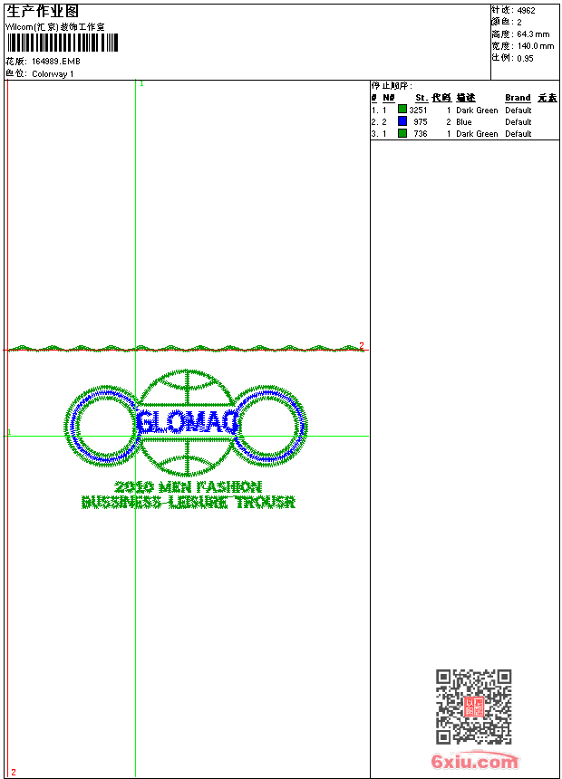 男装图_裤袋图 点此上传花版兑乐绣币/现金 emb花版参数: 大小:38.00 KB / 尺寸:140*64[毫米] / 针数:4962针 / 线色:2 / 格式:emb / 版本:9 版带文件需绣花软件方可打开,可配色打印导出各种格式或直接上机绣。如无绣花软件可下载1:1模拟效果图。 PNG图片信息:大小:0.1 (MB) /图宽*高:530x244(像素) 上传作者( 江南*** ) 获得乐绣币:2个 emb下载 1:1图下载 关闭 相似花型推荐: FASHION字样网格裤袋图案 女裤后袋网格 网格状裤袋 牛仔后袋刺绣图 裤袋线条 FASHION字裤袋 后裤袋 童装布老虎_卡通老虎_吉祥虎,电脑,EMB文件 福字刺绣图案_电脑_花版下载 得心应手刺绣挂画,工艺装饰品 麒麟_金麒麟_古典吉祥电脑图 字母刺绣 字母 字母章仔_EMB版带 年年有鱼_年年有余_红鲤鱼_工艺刺绣挂画_EM Honda 本田汽车贴标 HONDA_日本本田honda汽车车标 上一个花样:牛仔后袋标志 下一个花样:FASHION字样网格裤袋图案