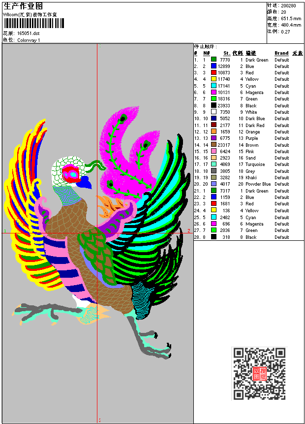 四神兽之朱雀_刺绣工艺挂画,电脑机绣版带版 点此上传花版兑乐绣币/现金 dst花版参数: 大小:587.26 KB / 尺寸:480*652[毫米] / 针数:200280针 / 线色:20 / 格式:dst / 版本:6 版带文件需绣花软件方可打开,可配色打印导出各种格式或直接上机绣。如无绣花软件可下载1:1模拟效果图。 PNG图片信息:大小:6.0(MB) /图宽*高:1818x2465(像素) 上传作者( 胡庚*** ) 获得乐绣币:20个 dst下载 1:1图下载 关闭 相似花型推荐: 毛巾绣熊猫_卡通毛巾绣_毛巾绣图案 对称花_花卉双联_工艺版带,刺绣装饰品 毅_毅力机绣仿手绣,刺绣挂画工艺版带 S字母裤袋图案 英文字母裤袋图 英文字母口袋裤袋图 休闲裤袋图案 吉祥花纹裤袋图案 牛仔裤裤袋样式图案 翅膀形状的裤袋刺绣图案_花版下载 牛仔裤裤袋图案 口袋_裤袋图案 裤袋图片,女裤袋,刺绣裤袋图案 牛仔裤后裤袋版带,电脑图案,图片 裤子后面裤袋的图案 上一个花样:四神兽之青龙_机绣仿手绣,刺绣挂画工艺版带 下一个花样:毛巾绣熊猫_卡通毛巾绣_毛巾绣图案