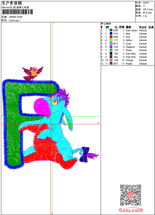 - 版带文件需绣花软件方可打开,可配色打印导出各种格式或直接上机绣。如无绣花软件可下载1:1模拟效果图。