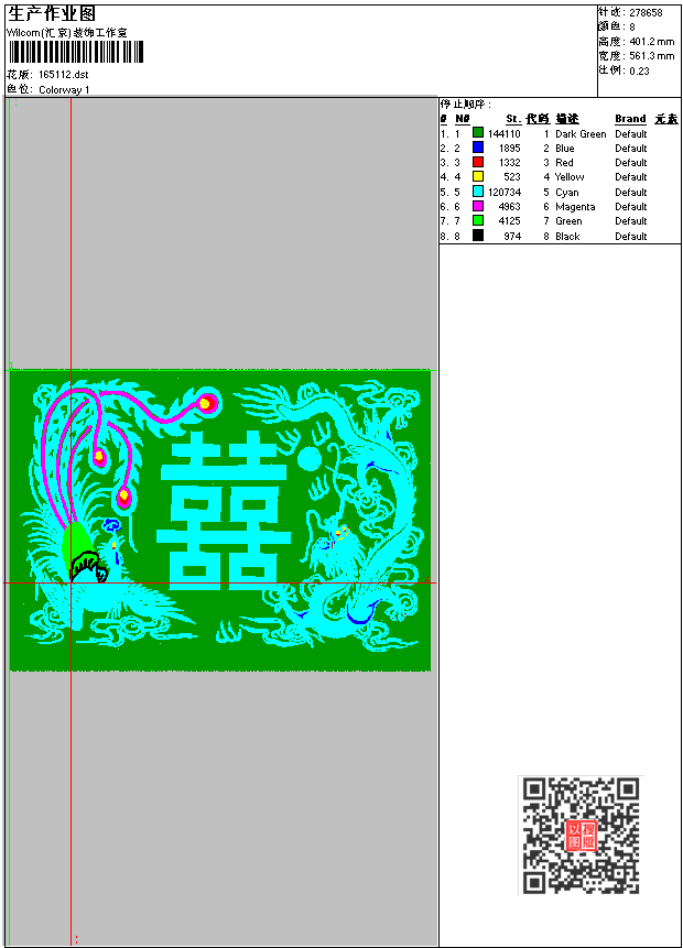 - dst花版参数: 大小:816.88 KB / 尺寸:561*401[毫米] / 针数:278658针 / 线色:8 / 格式:dst / 版本:6
