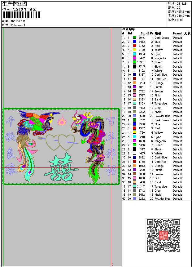 - dst花版参数: 大小:619.04 KB / 尺寸:710*465[毫米] / 针数:211129针 / 线色:20 / 格式:dst / 版本:6