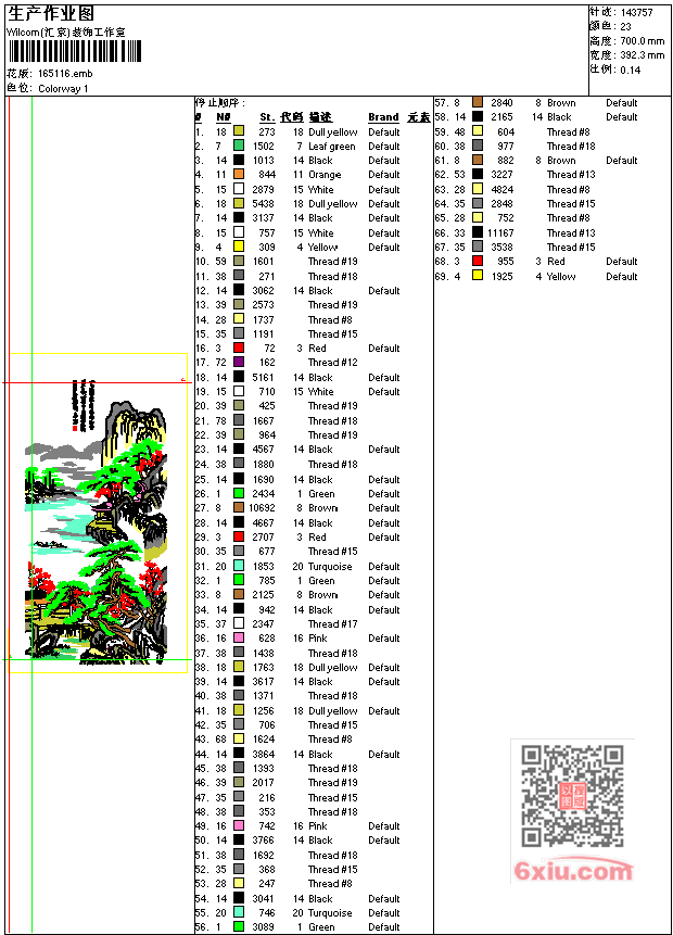 - emb花版参数: 大小:744.00 KB / 尺寸:392*700[毫米] / 针数:143757针 / 线色:23 / 格式:emb / 版本:9