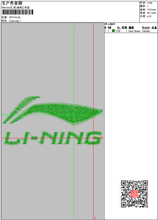 李宁 点此上传花版兑乐绣币/现金 dst花版参数: 大小:4.00 KB / 尺寸:31*15[毫米] / 针数:1194针 / 线色:1 / 格式:dst / 版本:6 版带文件需绣花软件方可打开,可配色打印导出各种格式或直接上机绣。如无绣花软件可下载1:1模拟效果图。 PNG图片信息:大小:0.1(MB) /图宽*高:117x57(像素) 上传作者( yeyi*** ) 获得乐绣币:1个 dst下载 1:1图下载 关闭 相似花型推荐: 耐克 福_中文福字的刺绣图案_电脑图 青蛙_卡通形象青蛙图_电脑刺绣 吉祥抽象花纹刺绣图案_图案 匹电脑刺绣图案,电脑图 刺绣图案花边_刺边图片 花边_单针小花边图 毛泽东故居-乱针绣版带-工艺版带-电脑苏绣工 大龙瓶-电脑精绣名画-苏绣刺绣-乱针绣装饰画 山清水秀_乱针绣_风景乱针绣,工艺版,刺绣挂 刺绣家纺_鸟组_床上用品刺绣图 家纺鸟_家纺图案_床上用品图 唐伯虎山水画_唐寅山水画_电脑仿湘绣_EMB刺 李宁标志刺绣图 腾飞的龙_大幅图 上一个花样:服装衣服下摆_电脑十字绣_十字绣下摆刺绣 下一个花样:耐克