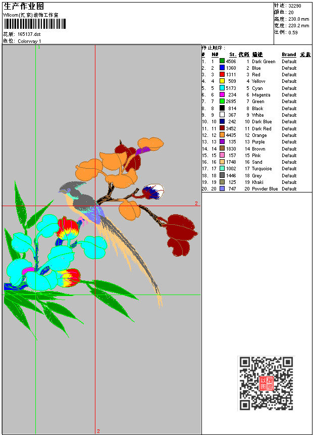 春枝上的鸟_春鸟图_工艺版_装饰刺绣图案 点此上传花版兑乐绣币/现金 dst花版参数: 大小:95.10 KB / 尺寸:220*230[毫米] / 针数:32290针 / 线色:20 / 格式:dst / 版本:6 版带文件需绣花软件方可打开,可配色打印导出各种格式或直接上机绣。如无绣花软件可下载1:1模拟效果图。 PNG图片信息:大小:0.6(MB) /图宽*高:833x870(像素) 上传作者( スタ*** ) 获得乐绣币:30个 dst下载 1:1图下载 关闭 相似花型推荐: 竹子 服装衣服下摆_电脑十字绣_十字绣下摆刺绣 李宁 耐克 福_中文福字的刺绣图案_电脑图 青蛙_卡通形象青蛙图_电脑刺绣 吉祥抽象花纹刺绣图案_图案 匹电脑刺绣图案,电脑图 刺绣图案花边_刺边图片 花边_单针小花边图 毛泽东故居-乱针绣版带-工艺版带-电脑苏绣工 大龙瓶-电脑精绣名画-苏绣刺绣-乱针绣装饰画 山清水秀_乱针绣_风景乱针绣,工艺版,刺绣挂 刺绣家纺_鸟组_床上用品刺绣图 家纺鸟_家纺图案_床上用品图 上一个花样:青山绿水仙鹤飞_刺绣乱针工艺版带_工艺挂画_EMB版带 下一个花样:竹子