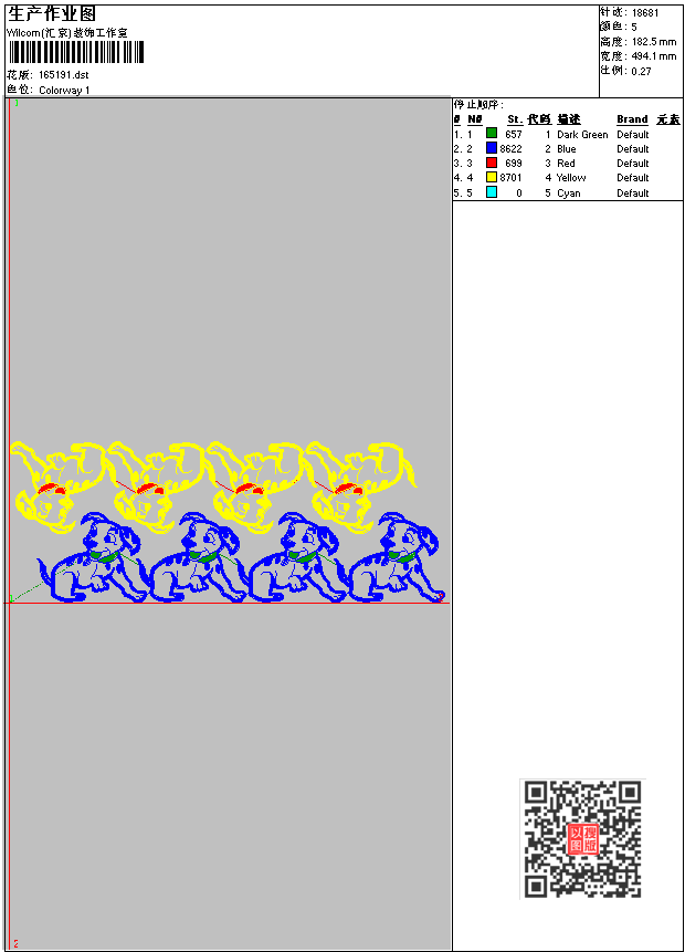 狗_小狗版_卡通狗刺绣图 点此上传花版兑乐绣币/现金 dst花版参数: 大小:55.23 KB / 尺寸:494*183[毫米] / 针数:18681针 / 线色:5 / 格式:dst / 版本:6 版带文件需绣花软件方可打开,可配色打印导出各种格式或直接上机绣。如无绣花软件可下载1:1模拟效果图。 PNG图片信息:大小:0.8(MB) /图宽*高:1869x691(像素) 上传作者( hebi*** ) 获得乐绣币:1个 dst下载 1:1图下载 关闭 相似花型推荐: 犬夜叉_日本动画卡通人物刺绣图_EMB版带 小熊骑木马_卡通刺绣图_贴布 吉祥蝠鼠_台布刺绣图 用于床上的靠背荷花刺绣图 满江红_汉字诗词刺绣图_EMB版带 章仔标志LOGO刺绣图 孔雀开屏刺绣图 米奇(Mickey)_米老鼠刺绣图_珠片 海盗与美人鱼刺绣图 唐老鸭刺绣图_卡通珠片图 卡通青蛙刺绣图 龙的图 小狐狸刺绣_狐狸卡通图_EMB版带 凤凰图_吉祥凤凰刺绣图_EMB版带 追风_龙的图_EMB版带 上一个花样:可爱卡通小狗刺绣图 下一个花样:犬夜叉_日本动画卡通人物刺绣图_EMB版带