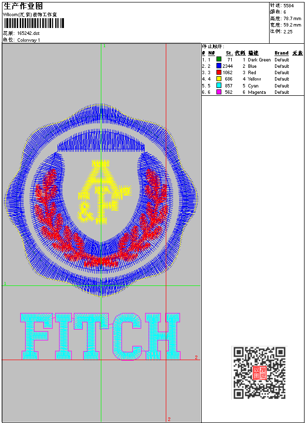 - dst花版参数: 大小:16.86 KB / 尺寸:59*79[毫米] / 针数:5584针 / 线色:6 / 格式:dst / 版本:6