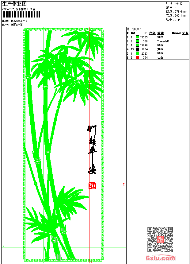 - emb花版参数: 大小:150.50 KB / 尺寸:202*579[毫米] / 针数:40412针 / 线色:4 / 格式:emb / 版本:9