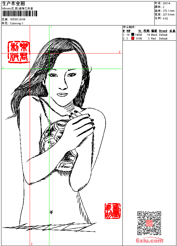 - emb花版参数: 大小:302.50 KB / 尺寸:227*372[毫米] / 针数:20314针 / 线色:2 / 格式:emb / 版本:9