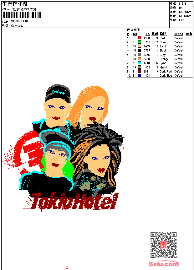 - 版带文件需绣花软件方可打开,可配色打印导出各种格式或直接上机绣。如无绣花软件可下载1:1模拟效果图。