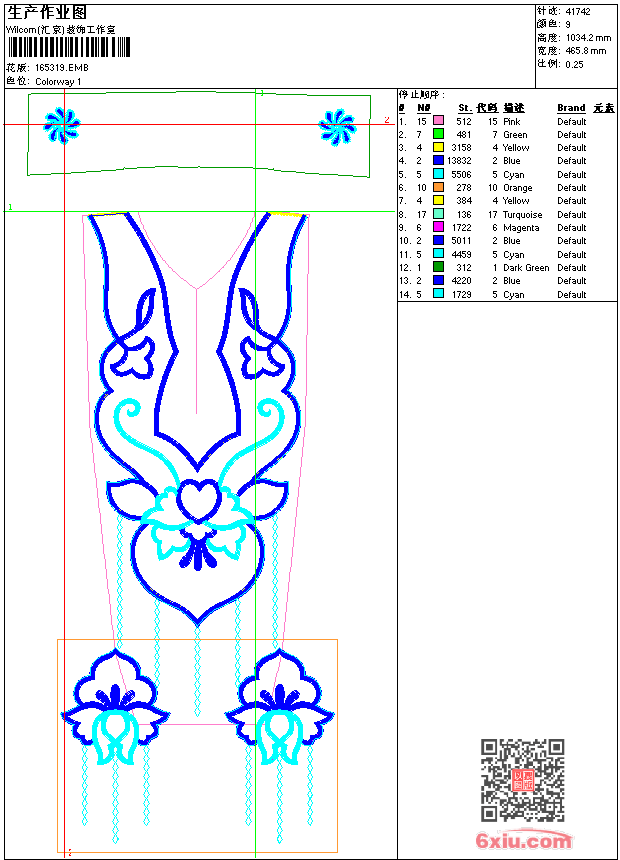 - emb花版参数: 大小:221.00 KB / 尺寸:466*1034[毫米] / 针数:41742针 / 线色:9 / 格式:emb / 版本:9