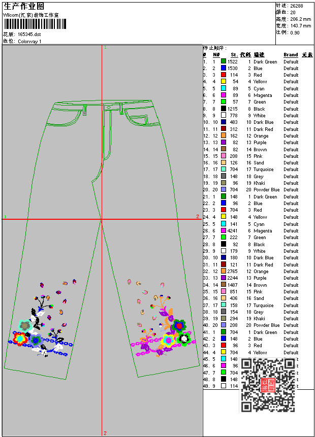 - dst花版参数: 大小:77.52 KB / 尺寸:144*206[毫米] / 针数:26288针 / 线色:20 / 格式:dst / 版本:6