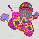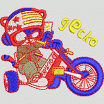 骑摩托车的卡通人物刺绣图案_电脑图案_EMB原